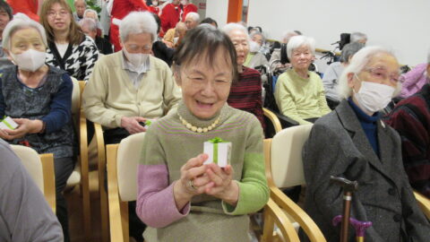 フィナーレには、サンタクロースからのプレゼントがあり、皆様に喜んでいただき、和やかな雰囲気のままクリスマス会を終える事が出来ました。