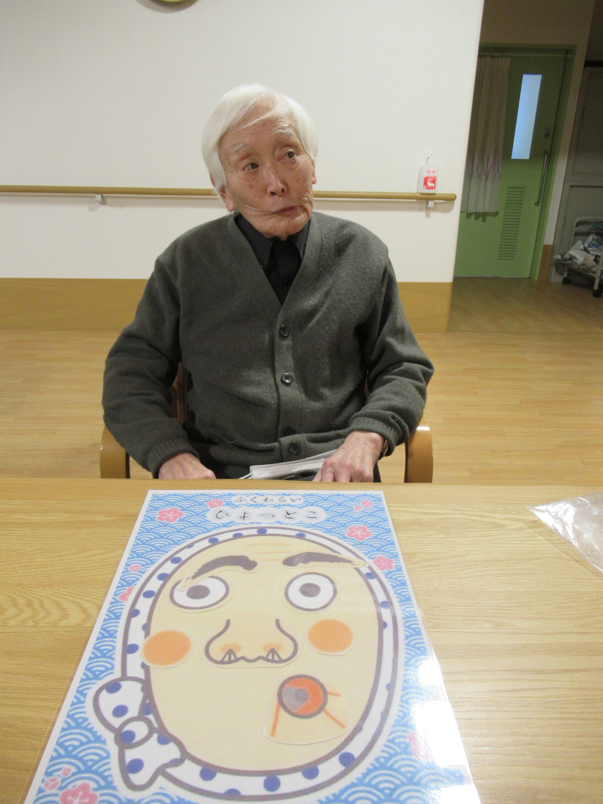 また福笑いで完成したユニークな表情に合わせて、入居者様も同じ表情をして下さったので、シャッターチャンス!